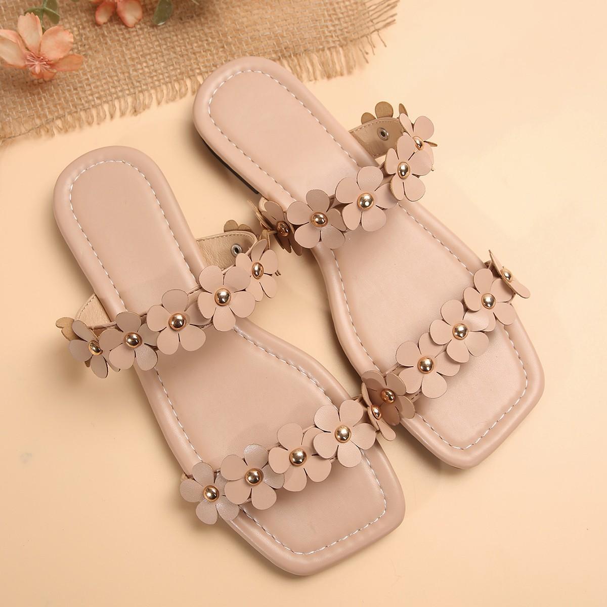 Большие размеры обуви Женские летние римские тапочки Новые женские туфли Цветочные шлепанцы Сандалии на плоской подошве с металлической отделкой 43 хаки