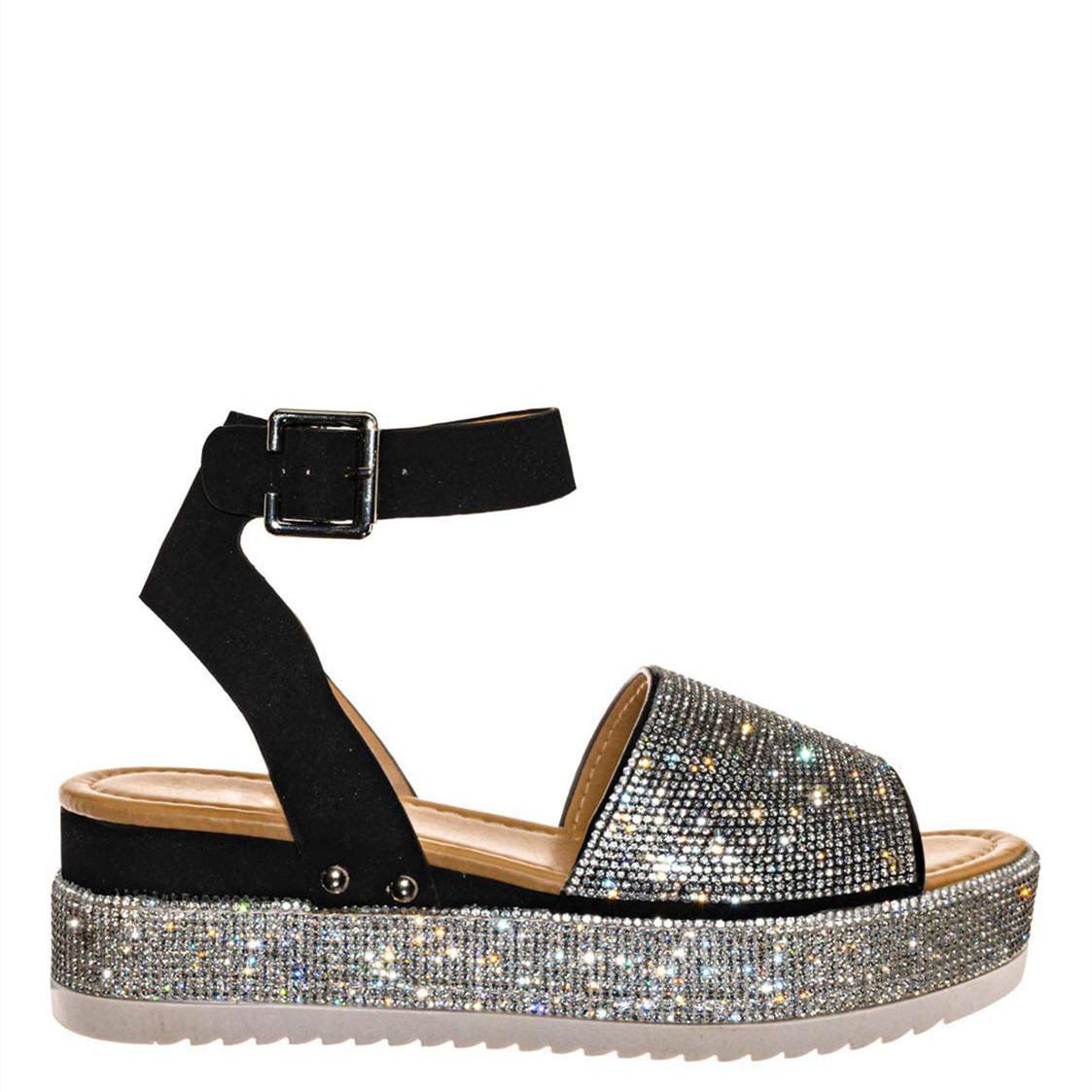 Большие размеры пляжные босоножки на платформе женские стразы, цветные бриллианты, пряжка с одним словом с маффином и женские туфли босоножки 36 чёрный