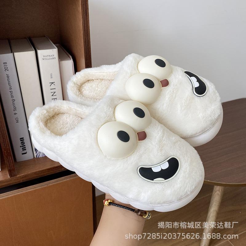 Большие хлопковые тапочки с изображением собаки, осень и зима, новые домашние тапочки для дома, толстая подошва, легкие, нескользящие, с рисунком из мультфильмов, необычные меховые туфли 36-37 белый
