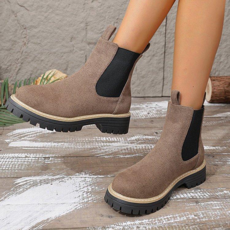 Большого размера квадратный каблук круглый носок короткие модные ботильоны осень и зима новые боковые эластичные замшевые женские ботинки 43 хаки