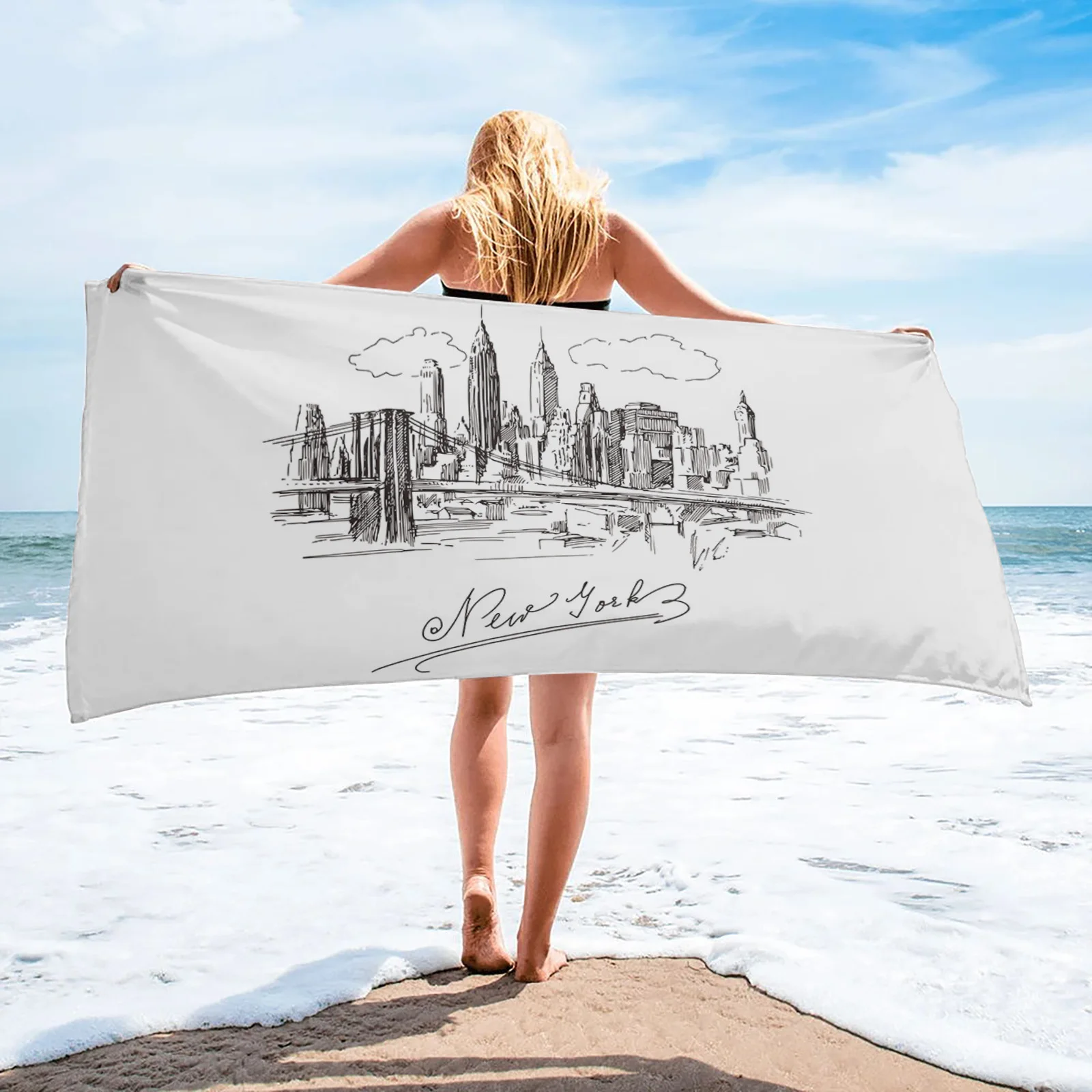 Большое бытовое банное полотенце из микрофибры, с изображением Нью-Йорка