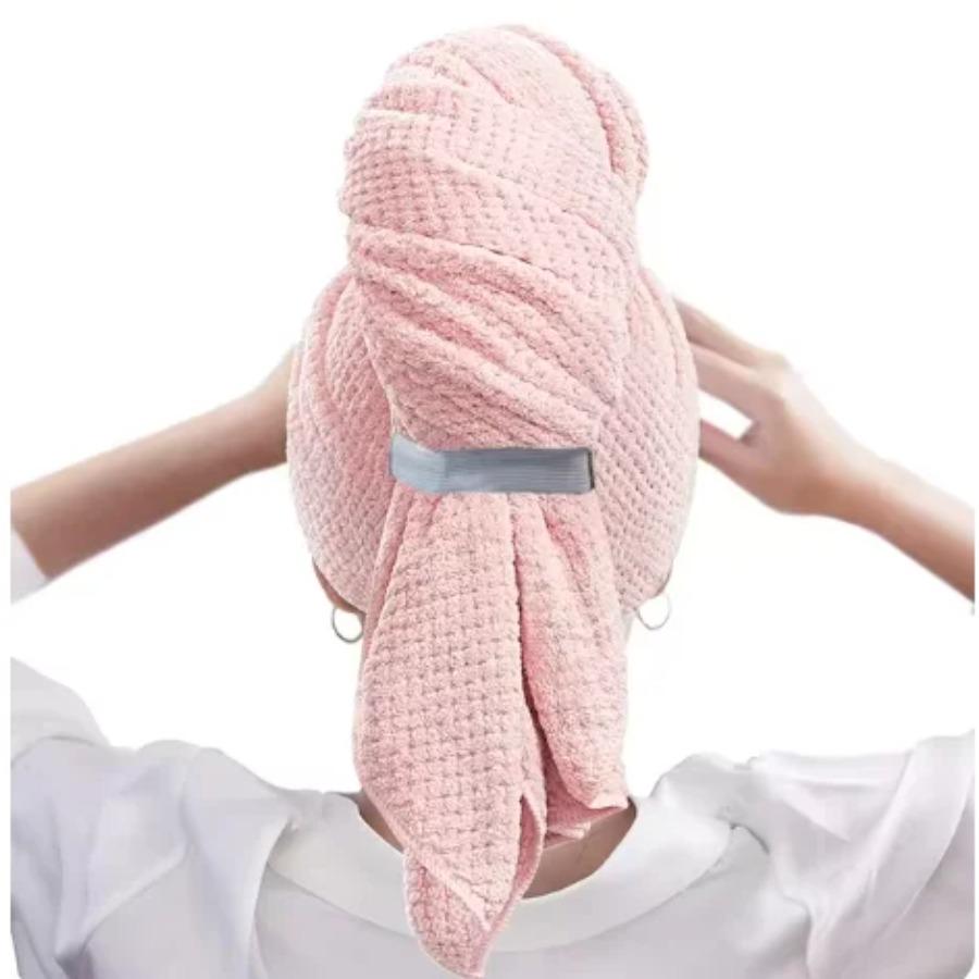 Большое однотонное влагопоглощающее полотенце для сушки волос из микрофибры, полотенце для волос с эластичным ремешком, мягкое быстросохнущее полотенце