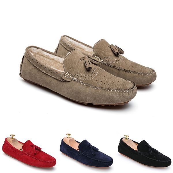 2021 non-brand men plus cashmere keep warm leather peas shoes black gray red brown blue khaki overshoes casual lazy shoes