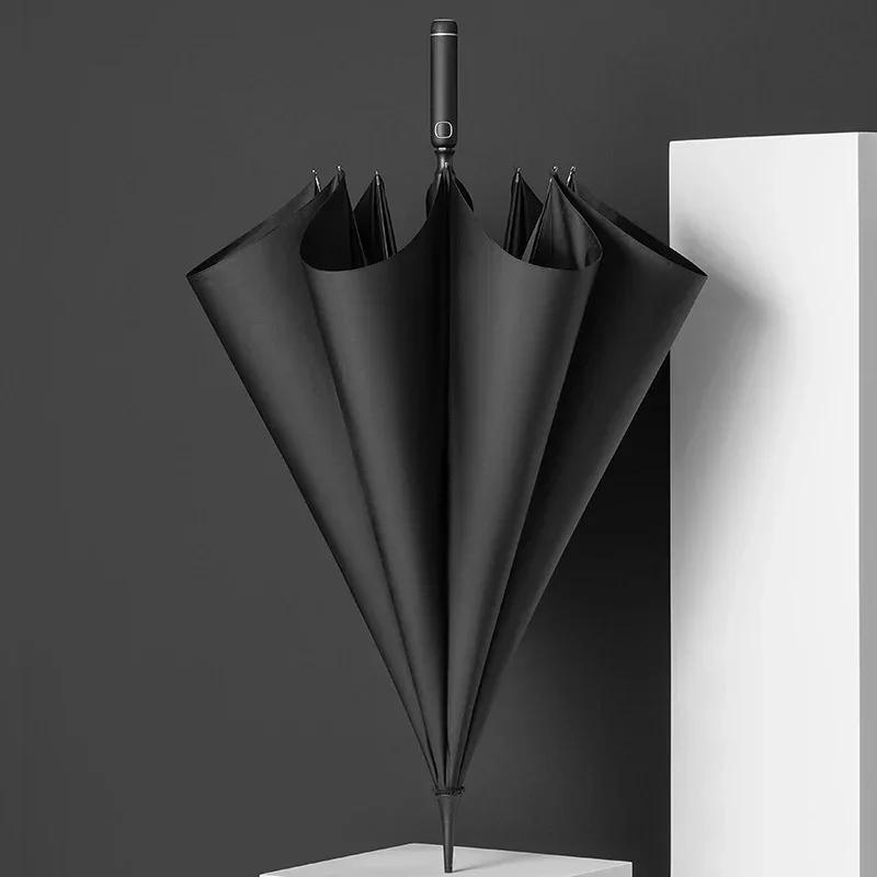 Большой зонт для гольфа для мужчин, светодиодный ночной светильник, зонт с длинной ручкой, ветрозащитный, прочный, с 8 ребрами, деловой большой зонт, сильный дождь чёрный