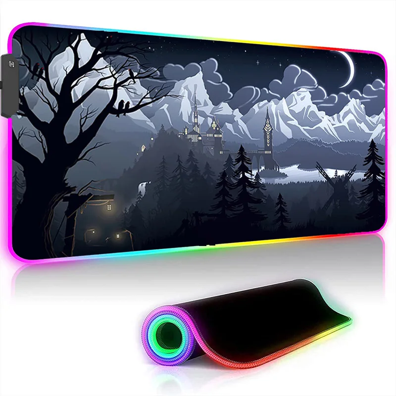 Большой игровой коврик для мыши с подсветкой, офисный мягкий коврик для мыши, с рисунком под заказ, с аниме, RGB, для ноутбука