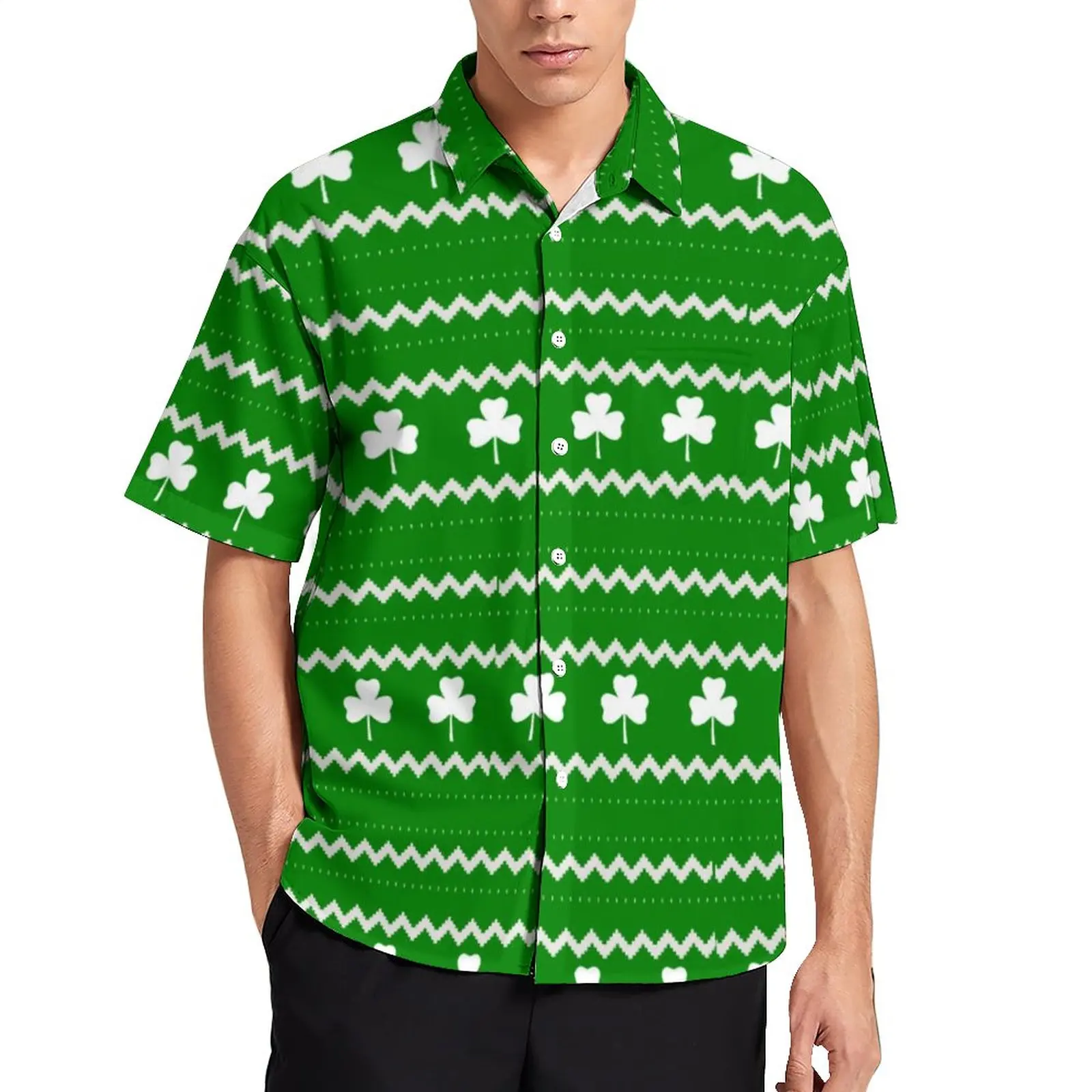 Свободная рубашка с принтом Shamrock, мужские пляжные рубашки с изображением клевера, повседневные Гавайские рубашки с короткими рукавами, новинка, большие блузки