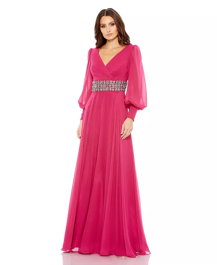 Женское платье с рукавами "епископ", запахом и поясом, струящийся фасон Mac Duggal, красный