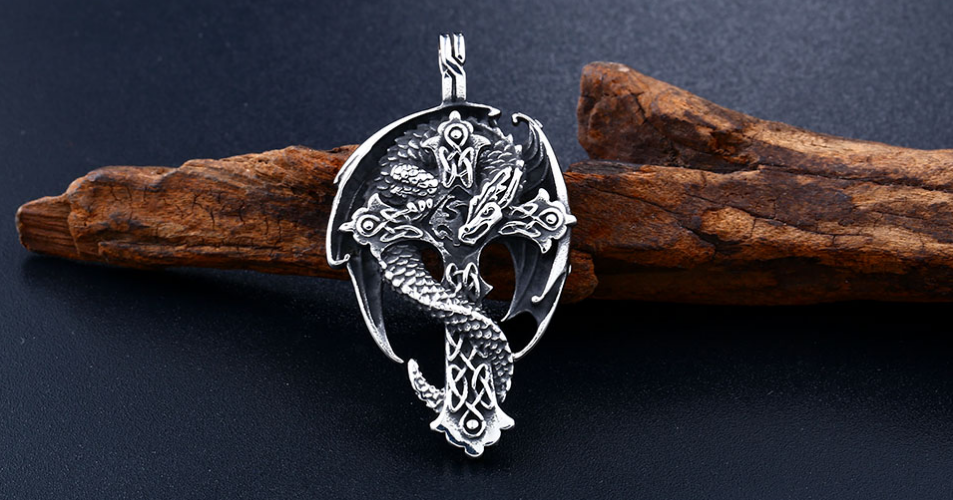 Большой кулон Скандинавский Дракон сталь 316L Вечный