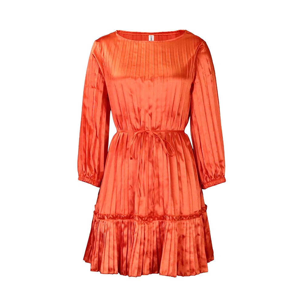 Большой размер, женское летнее модное однотонное плиссированное бандажное платье, женское цельное короткое платье с длинными рукавами S оранжевый