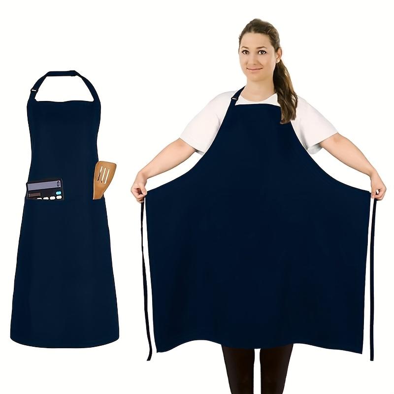 Большой размер 89 см Регулируемый фартук с карманами Прочный полиэстер Длинный нагрудник Регулируемые шейные поясные завязки Однотонный Функциональный кухонный фартук