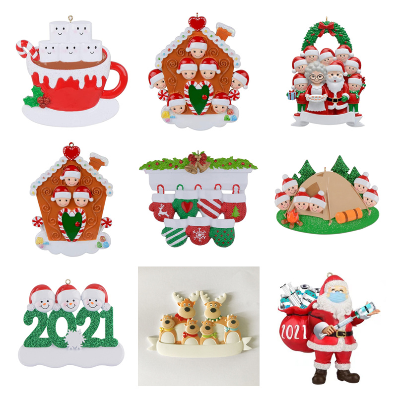 Festive Christmas Ornaments Decorations Quarantine Survivor Resin Ornament Creative Toys Gift Tree Decor Mask Snowman Sanitized Family