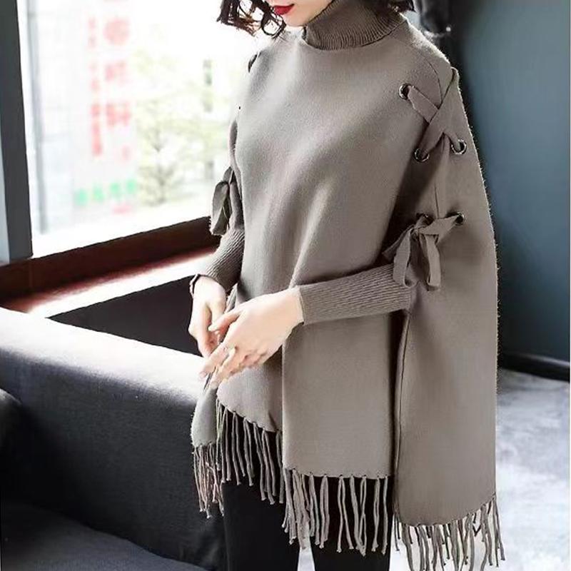 Большой свободный свитер с разрезом «летучая мышь», толстый свитер, женский пуловер с высоким воротником, накидка в стиле шали, куртка Гонконга в стиле ретро One Size хаки