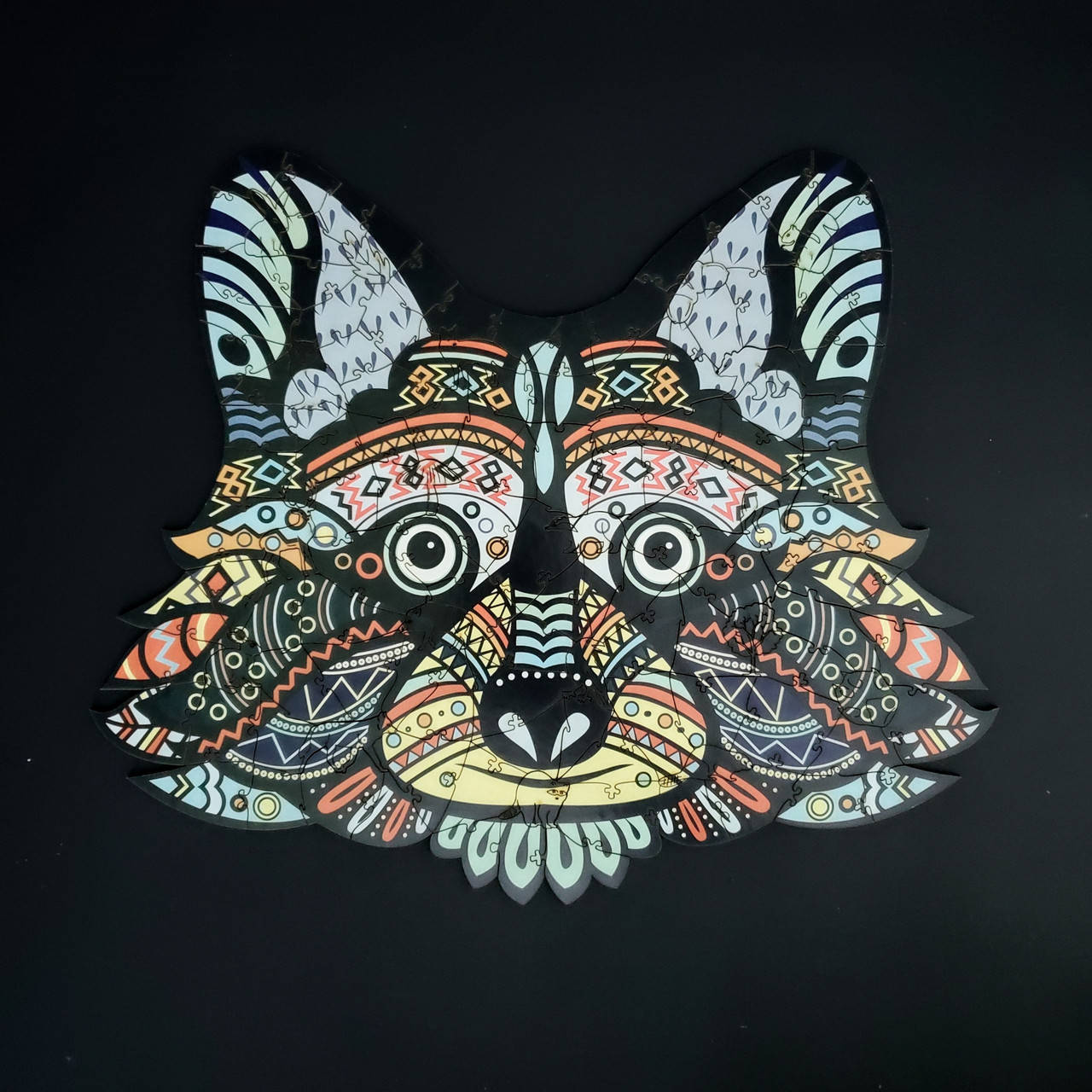 В собранном виде пазл имеет А3 формат и состоит из 130 элементов. Размер Енота 34*27см.