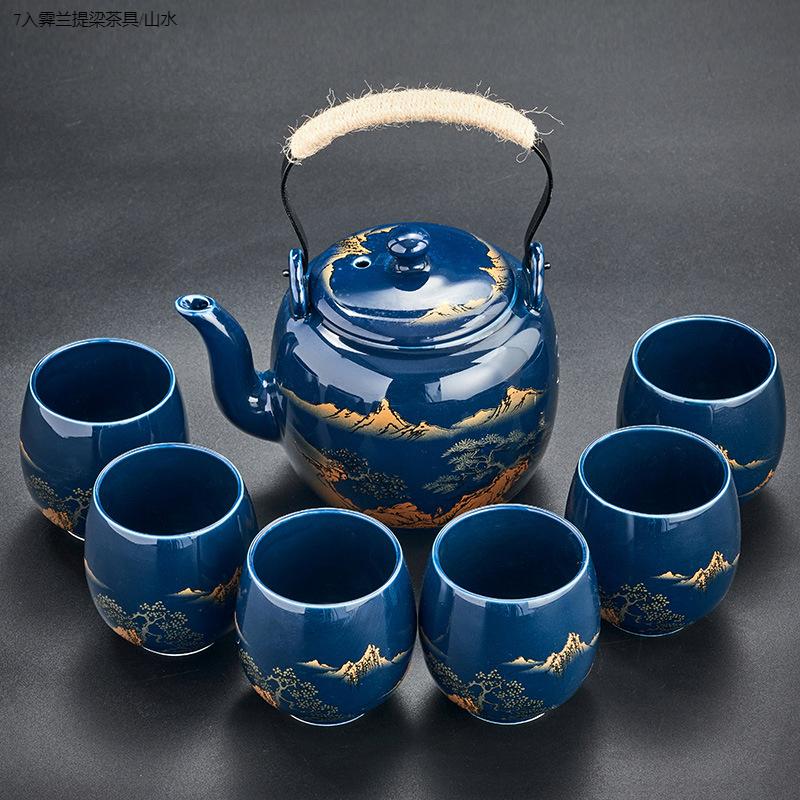 Большой чайный сервиз с черной глазурью, простой керамический горшок с балкой, набор из целого чайника, чайный сервиз, набор из чайника и чашки