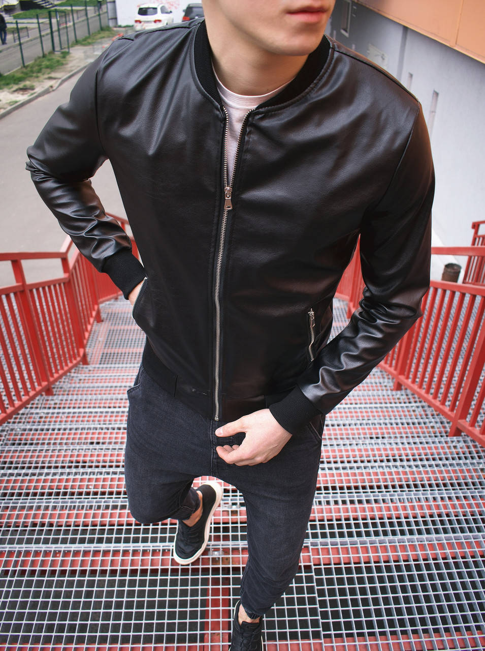 Бомбер черный кожаный мужской идет с высококачественной материалов . Идеально подходит для весенней, осенний носки и прохладных летних вечеров .