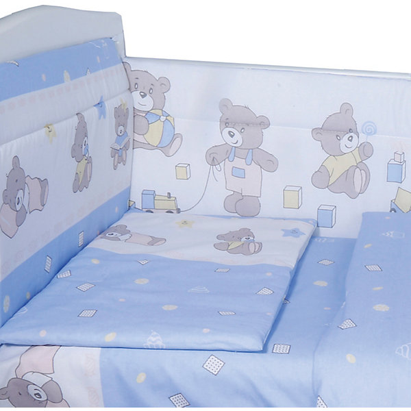 Бортик на кроватку Эдельвейс "Мишка", 40х360 см, Голубой