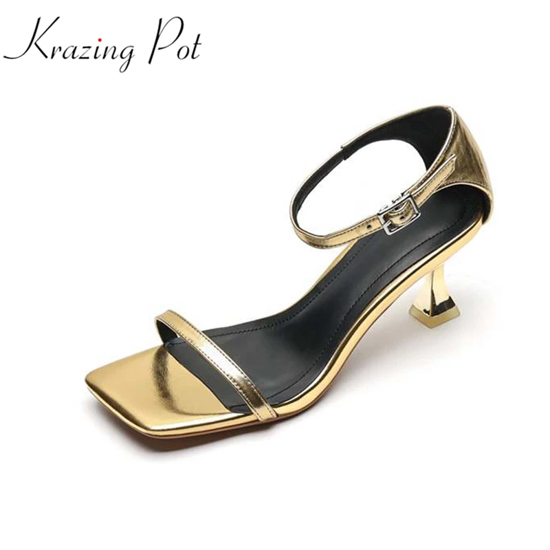Босоножки женские из натуральной кожи на высоком каблуке с открытым носком
