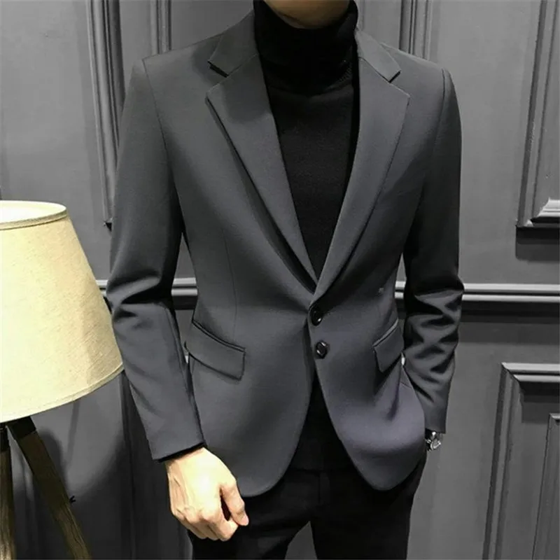 Пиджаки мужские корейские приталенные повседневные деловые пальто костюмы мужской весенне-осенняя одежда однобортный черный пиджак