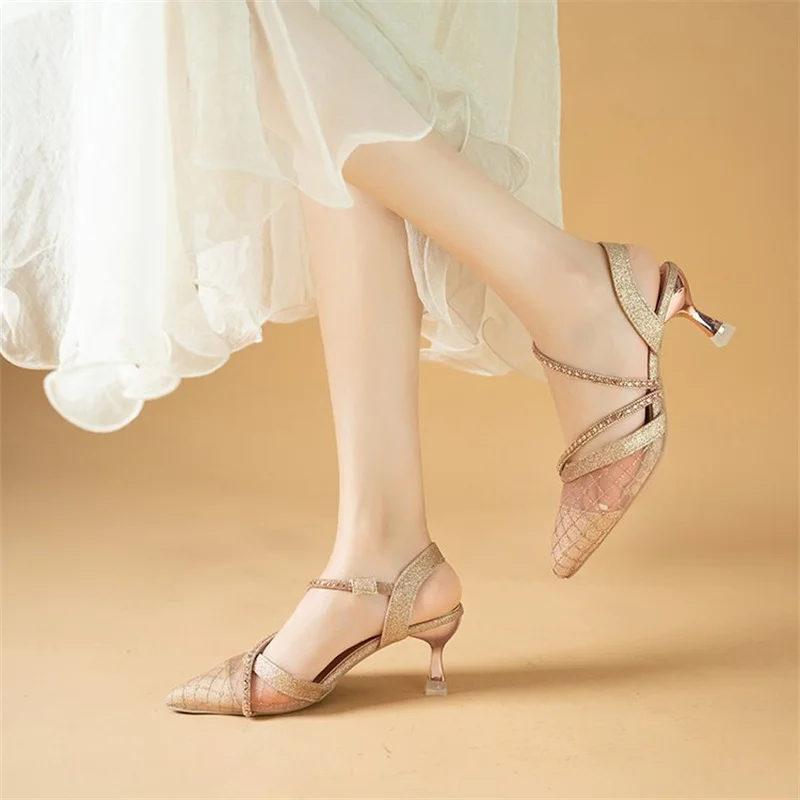 Босоножки с острым носком, сексуальные летние туфли-лодочки на тонком каблуке, женские туфли на высоком каблуке, 2023