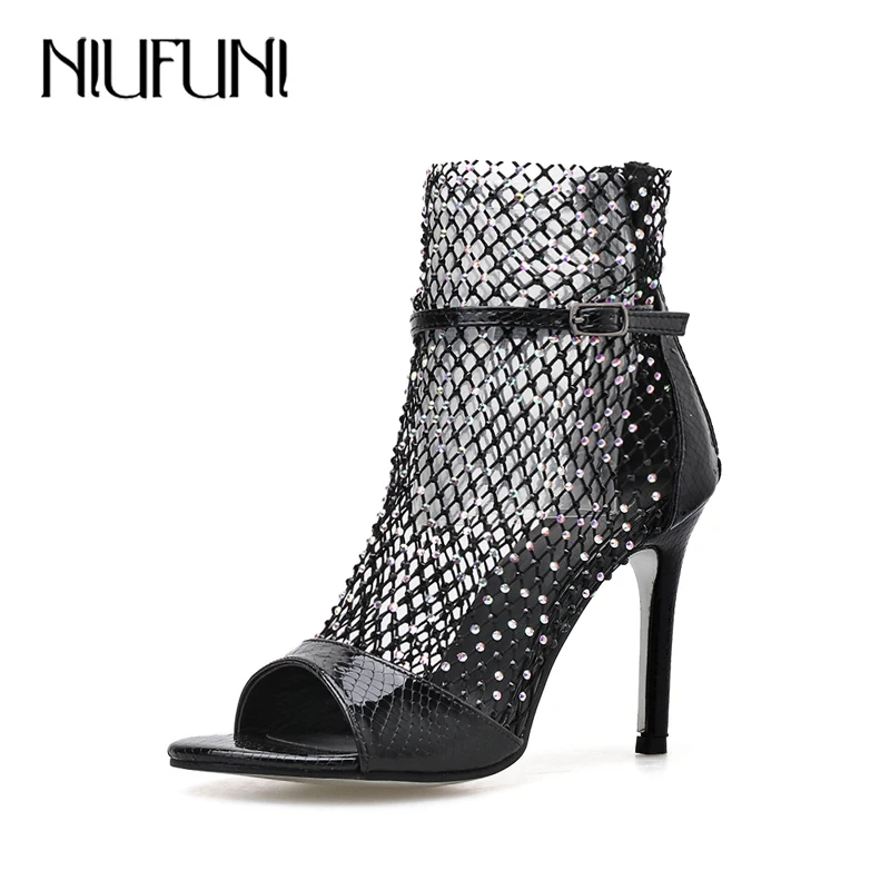 Босоножки NIUFUNI женские сетчатые, пикантные сандалии-гладиаторы с открытым носком, на шпильке 10 см, обувь для вечеринки, лето 2020