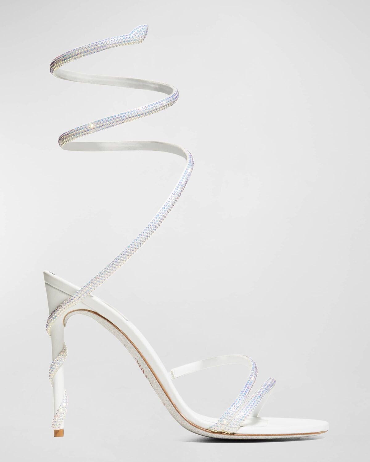 Босоножки Strauss со змеиным ремешком на щиколотке Rene Caovilla, цвет Ivory