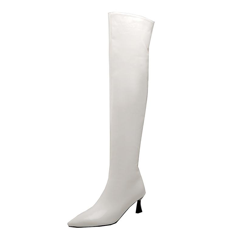 Ботильоны большого размера из глянцевой лакированной кожи на молнии сбоку, с острым носком и каблуком-рюмочкой, ботфорты выше колена, сексуальные для ночного клуба, для шоу, длинные ботинки, зима 2025 39 белый