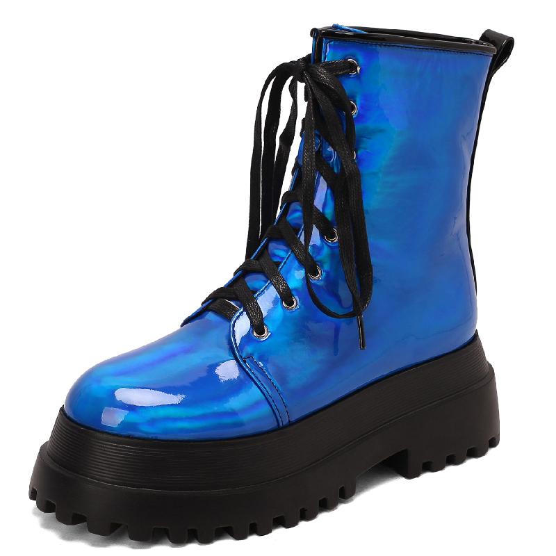 Ботильоны в стиле панк, женские, на платформе, с круглым носком, готические, золотые, короткие, армейские, на шнуровке, осенне-зимние, черные, синие, розовые, туфли для вечеринок, женские 44 синий