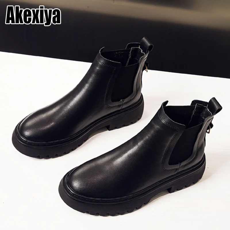 Ботильоны женские кожаные без застежек, на низком каблуке, с круглым носком, BC1868