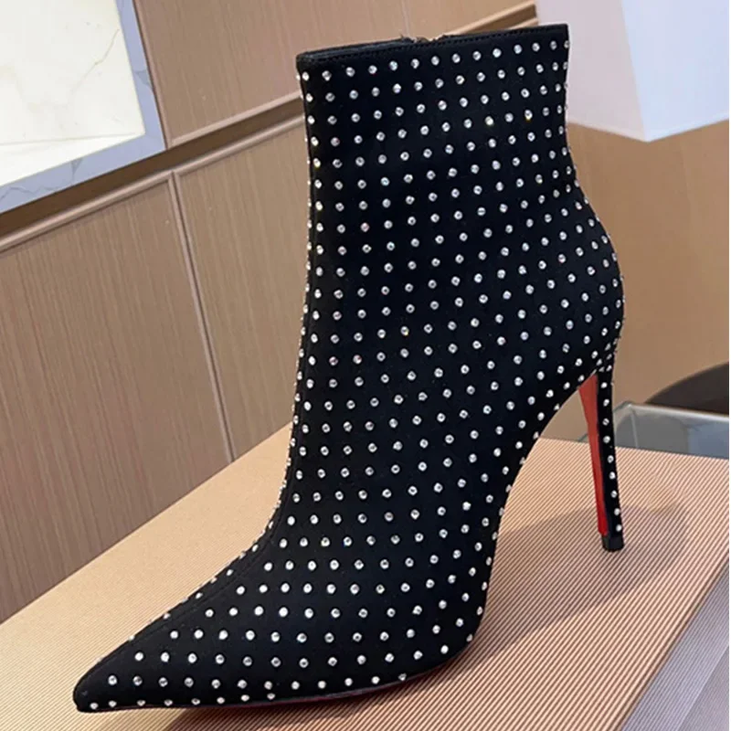 Rhinestones Designer Shoes Women Black High Heels Shallow Mouth Pointed Toe Glittering Rhinestone Buckle Single Sexy Shoes