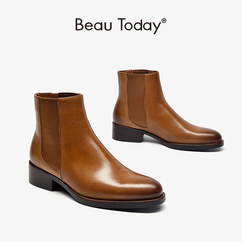 Ботинки Челси женские из натуральной коровьей кожи, восковые, с круглым носком, без застежек, с резинками, ручная работа, 03291