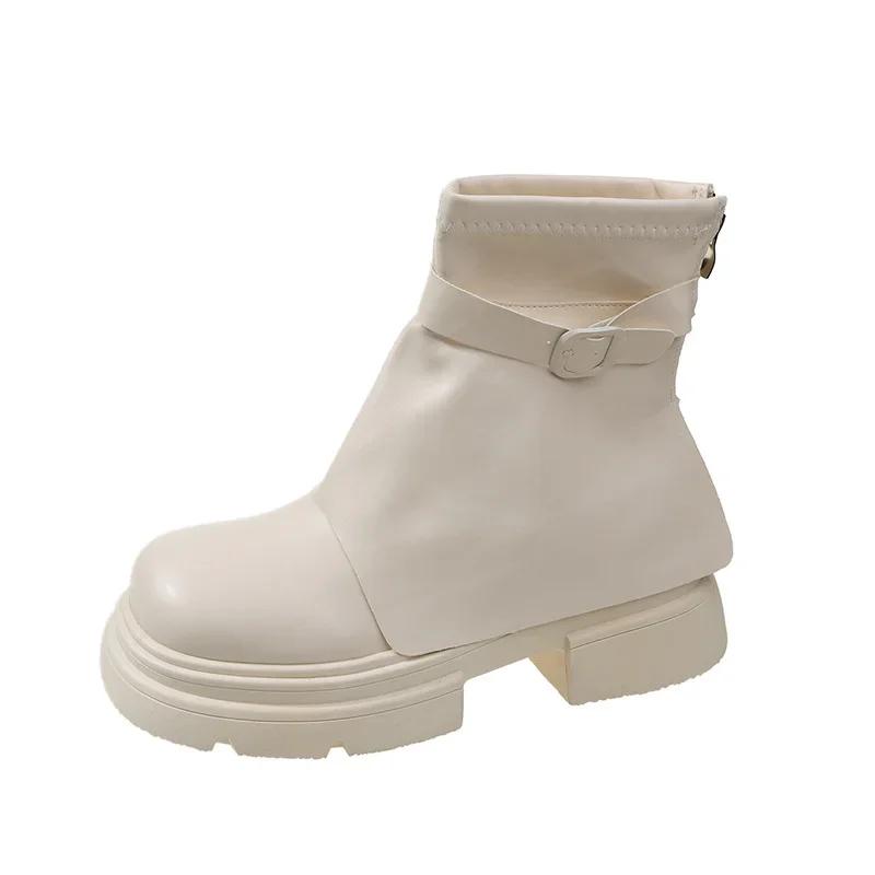 Ботинки в стиле панк с пряжкой на ремне, женские, новые модные, с молнией сзади, ботильоны, женские, на толстой подошве, высокие, на высокой платформе, 2024 35 бежевый