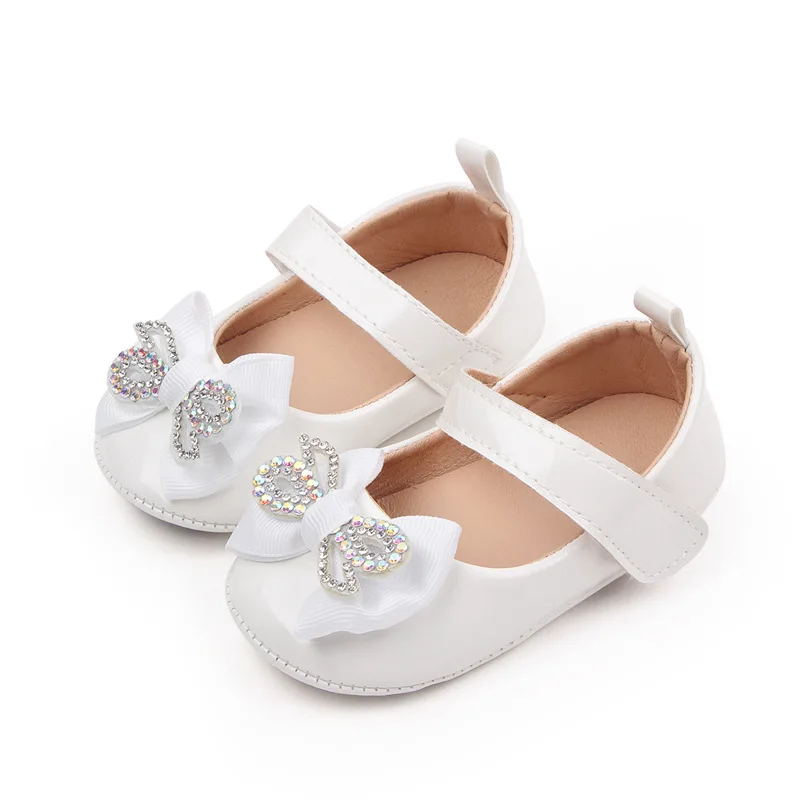 Ботинки для маленьких девочек в стиле принцессы, кожаные ботинки с бантом, Нескользящие ботинки для первых шагов, обувь для малышей