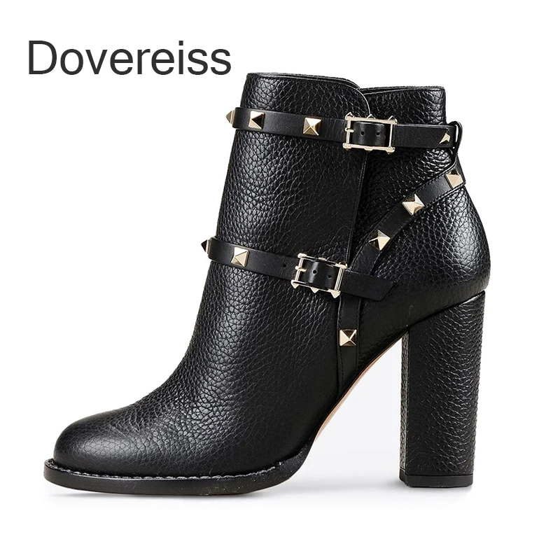 Ботинки женские зимние короткие с заклепками на массивном каблуке, размеры 41, 42, 43, 44, 45, 46