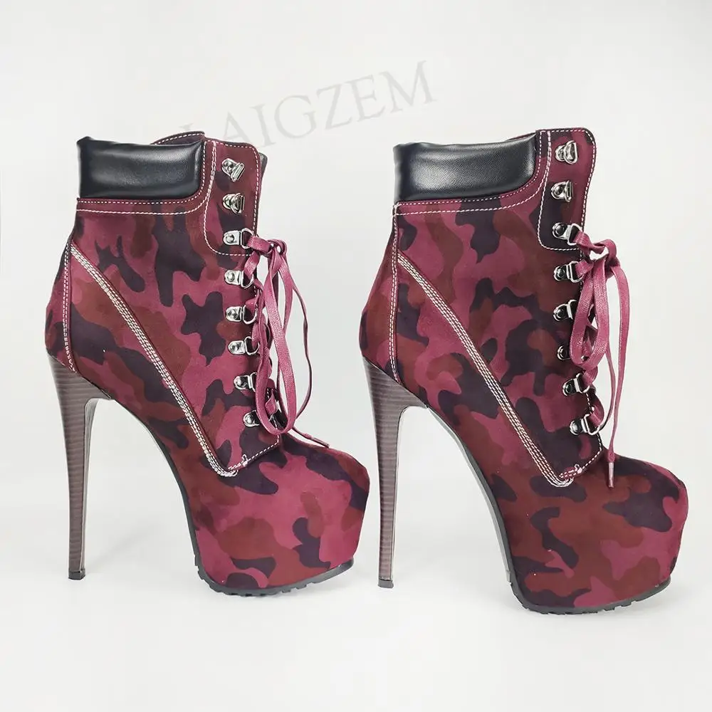 Ботинки женские из искусственной замши, камуфляжные, на высоком каблуке, со шнуровкой, большие размеры 43, 44, 48, 50, 52, 2021
