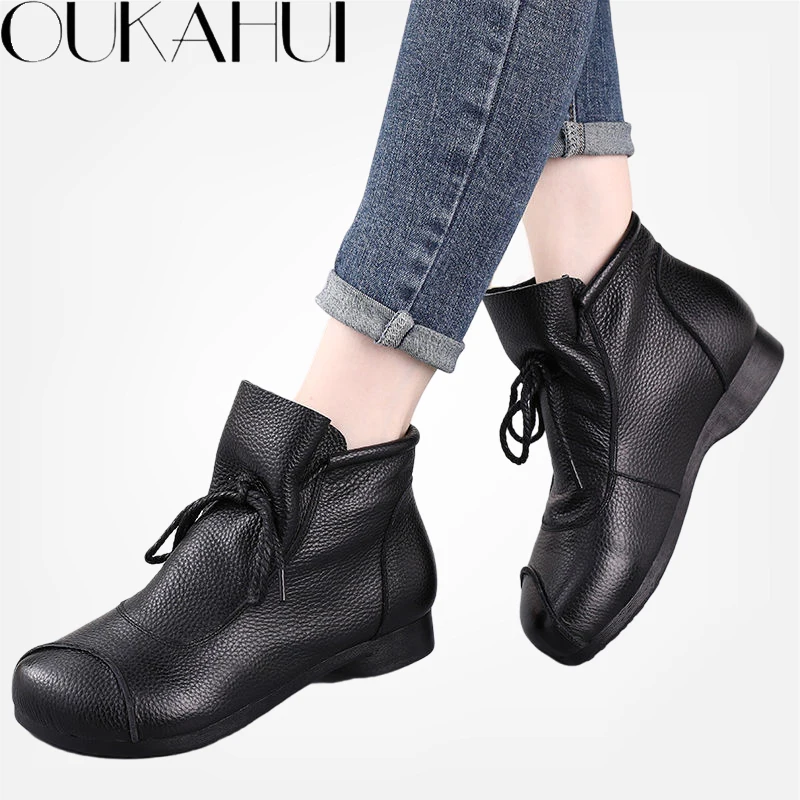Ботинки женские из натуральной кожи, на низком каблуке, с круглым носком