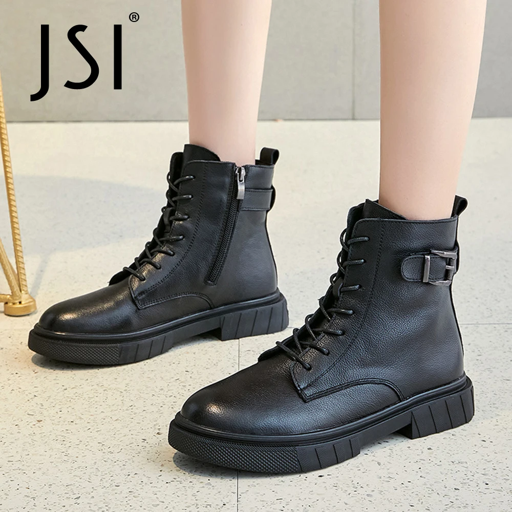 Ботинки женские из натуральной кожи, с круглым носком, на молнии и с пряжкой, VO408