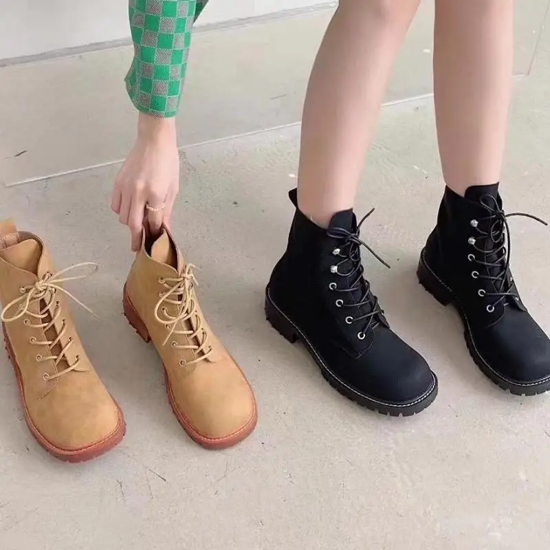 Ботинки женские кожаные мотоциклетные с перекрестной шнуровкой на осень и зиму