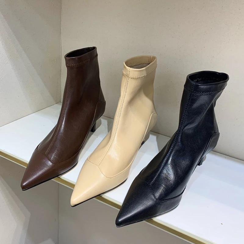 Ботинки женские кожаные, с острым носком, на высоком каблуке, для зимы, 2020