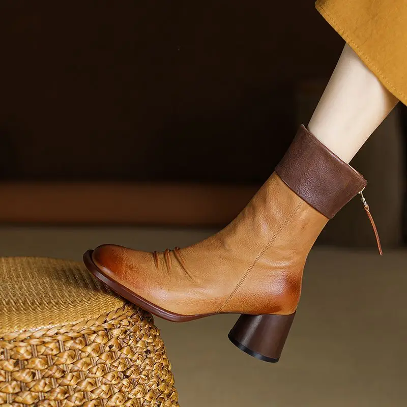 Ботинки женские короткие из воловьей кожи, на молнии сзади, 6 см