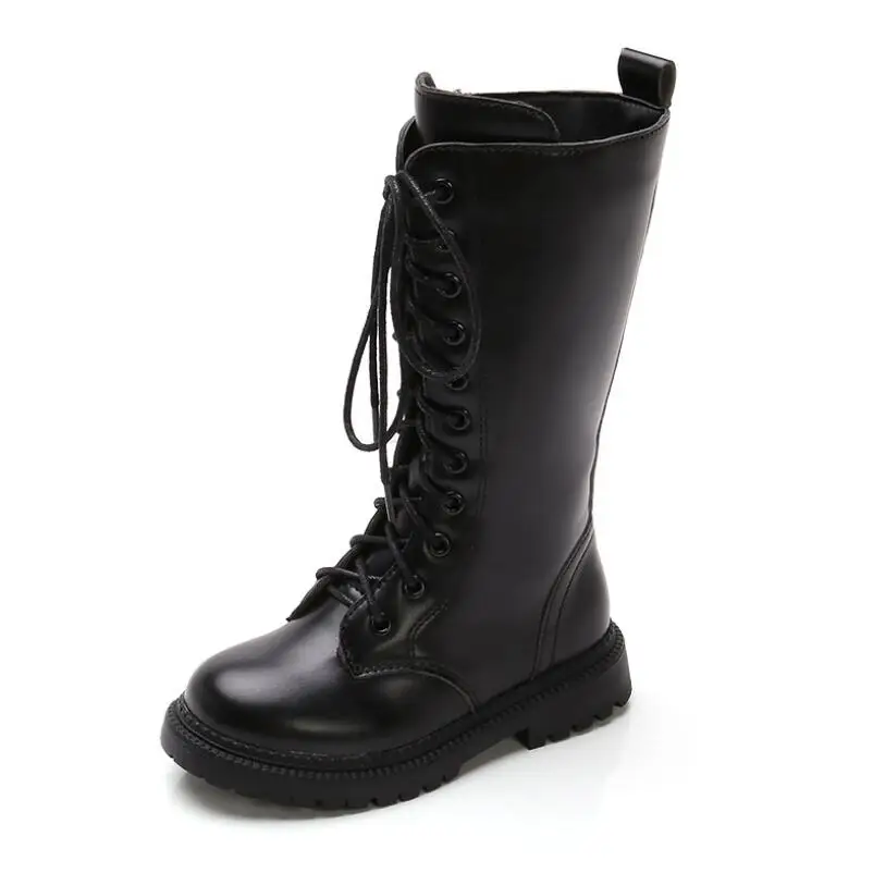 Ботинки мартинсы для девочек, высокие туфли из искусственной кожи, на шнуровке, с кристаллами, на молнии, зимняя обувь с флисовой подкладкой