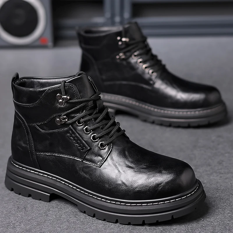 Ботинки мужские из коровьей кожи, Винтажная обувь на шнуровке, с высоким верхом и цепочкой, с пряжкой и ремешком, хлопковые, с круглым носком, модные зимние
