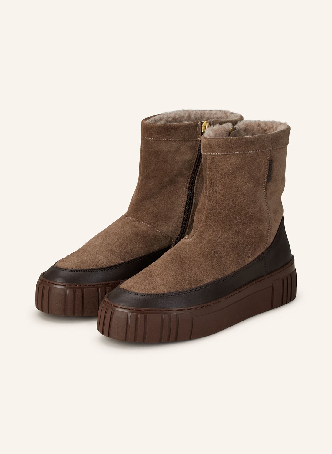 ОсобенностиПолностью на подкладке из натурального мехаЗамшевая кожаМеталлические деталиМолния сбокуМиндалевидный носокНескользящая подошва