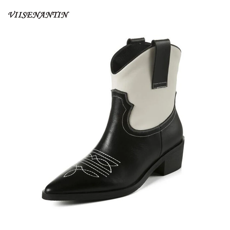 Ботинки VIISENANTIN в стиле ретро, разноцветные, с острым носком, на толстом каблуке, до щиколотки, дамские короткие сапоги