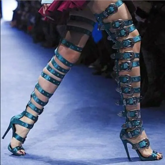 Ботфорты с заклепками в стиле ретро, однотонные привлекательные модные сапоги на высоком каблуке, с несколькими пуговицами, летние ажурные сапоги