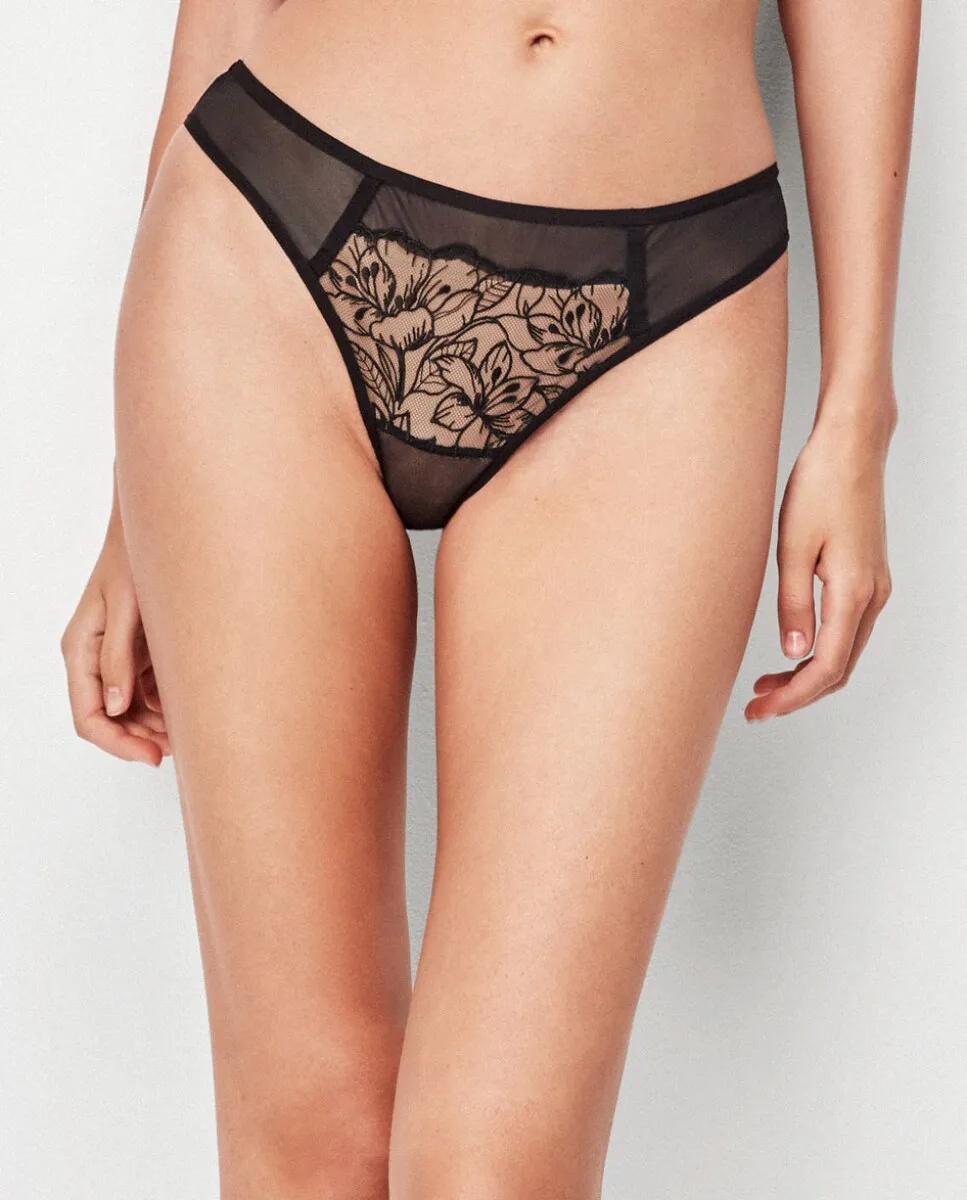 Бразильские трусики с кружевной тканью спереди Gisela, черный