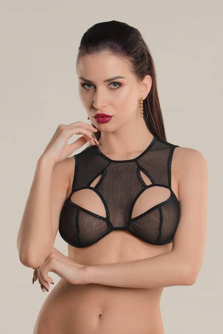 Линия провокационного эротического белья WANAME® Apparel – для женщин, которые достойны наслаждения и не скрывают этого. Бралетт с фигурными вырезами «Дэ́ликаси» (англ. Delicacy – «Деликатность») из тонкой эластичной сетки эффектно облегает фигуру. Ощущается совсем невесомым, не сковывает движений, но визуально меняет силуэт. Шелковистая поверхность материала дарит приятные ощущения при прикосновении. А современные элементы дизайна бралетт тешат женское самолюбие. Фигурные вырезы притягивают взгляд к нежной коже бюста и зрительно добавляют полноту груди. Необычный крой, регулируемые бретели, застежка на шее и двухрядная застежка на спине обеспечивают идеальную посадку. Открытая спина – важная деталь чувственного образа. Белье Waname® Apparel эксклюзивно, разработано и произведено в России с учетом предпочтений российских покупательниц.