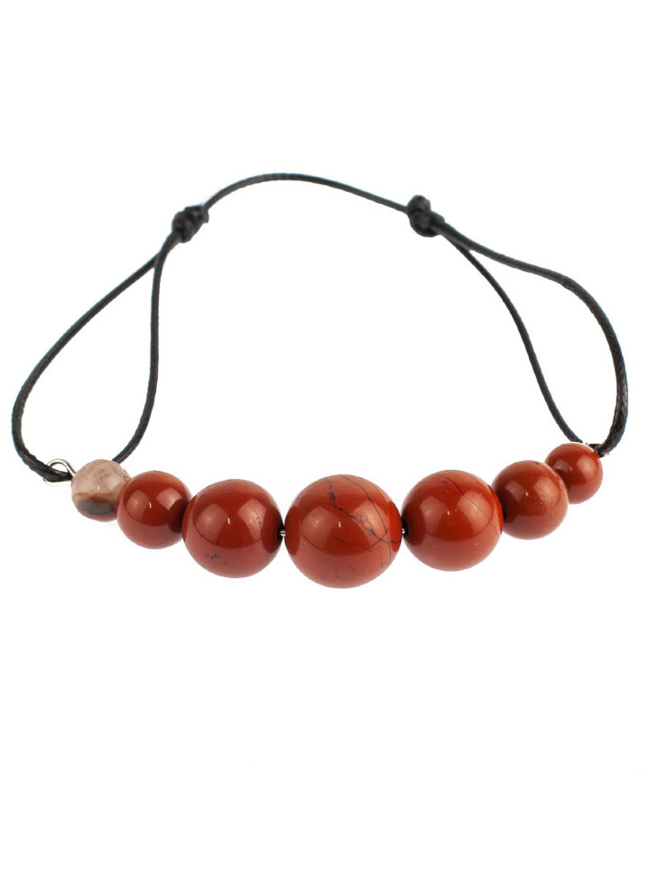 Браслет на шнурке с подвижными узлами. Размер браслета регулируется. Диаметр камней: 6-12 мм. Материал: яшма.