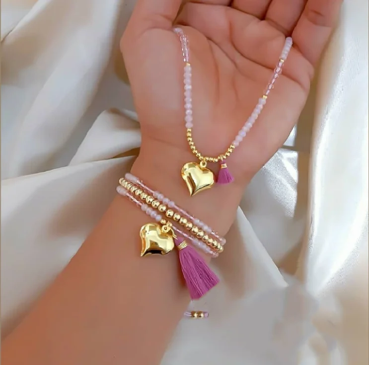 Браслет в форме сердца, браслет с позолоченными бусинами, регулируемые ювелирные изделия для женщин