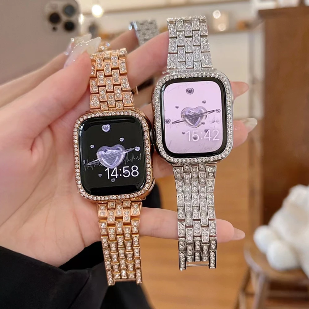 Браслет женский из нержавеющей стали с бриллиантами для Apple Watch Series 8 7 6 5 4 3 2 se 40 38 41 мм, ремешок для iWatch Ultra 49 мм 45 44 42 мм