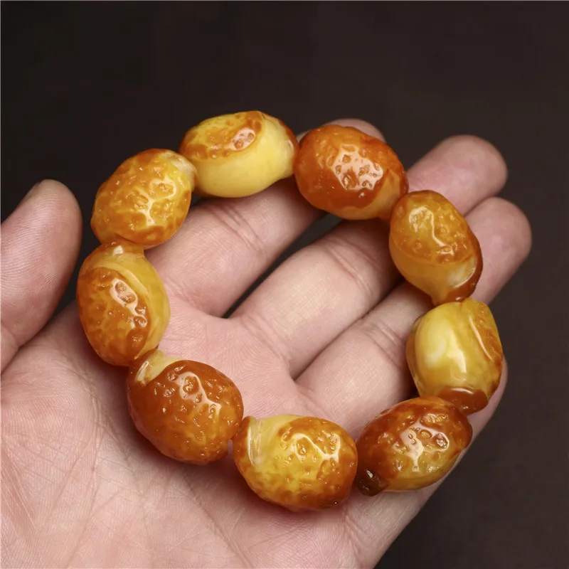 Браслет из грубого камня с кожаным браслетом, куриное масло, Желтый янтарь, браслет из пчелиного воска, старинный цветом пчелиного воска